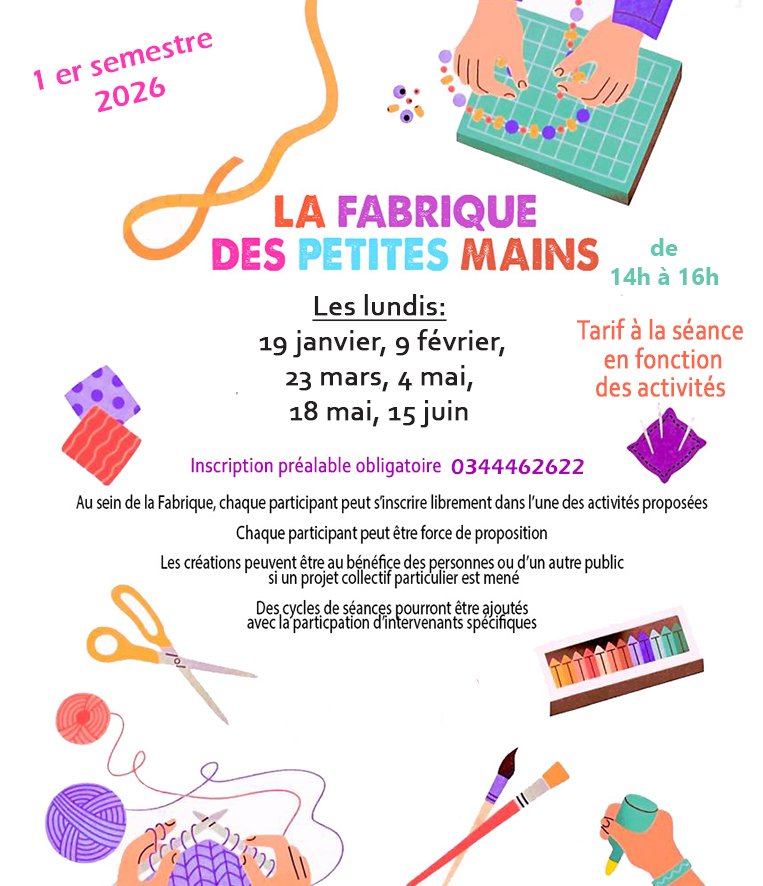 Venez rejoindre La Fabrique des Petites Mains, un espace convivial et créatif où vos idées prennent vie ! Cet atelier ouvert à toutes et tous vous invite à explorer vos talents manuels, échanger des savoir-faire, et donner libre cours à votre imagination.
