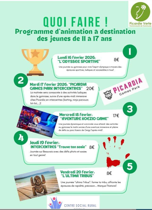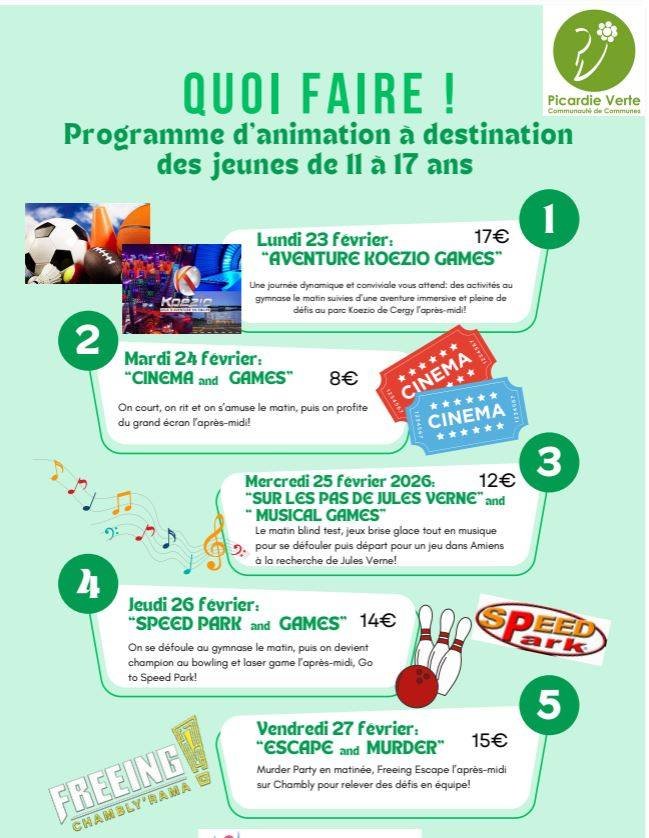 đ„ Quoi Faire ? Le programme dâactivitĂ©s jeunesse 11-17 ans â du 16 AU 27 FEVRIER 2026